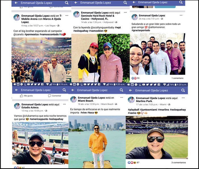 Mérida, Yucatán, 7 de febrero de 2020.- Emmanuel Ojeda López, quien en el pasado fue acusado de robar tapones de autos por el rumbo de la colonia Pensiones y luego terminó en importantes cargos públicos gracias a la protección de Víctor Caballero Durán, ahora presume de una vida de paseos por el mundo y de lujos que muy pocos pueden darse, como a asistir a un Súper Tazón.