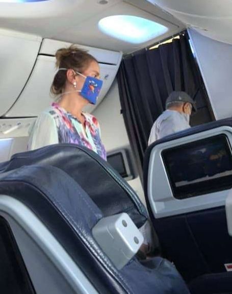 A pesar de tratar de pasar inadvertida cubriendo su rostro con un tapabocas, por aquello del coronavirus, y un gran sombreo, la primera dama fue captada al buscar su asiento en el área de lujo de su vuelo.