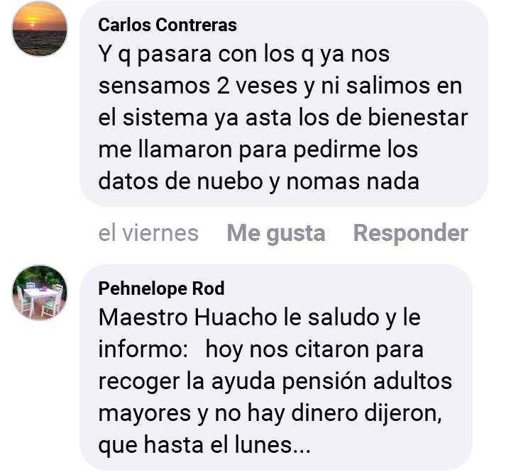 “Carlos Contreras Y q pasara con los q ya nos sensamos 2 veses y ni salimos en el sistema ya asta los de bienestar me llamaron para pedirme los datos de nuebo y nomas nada”