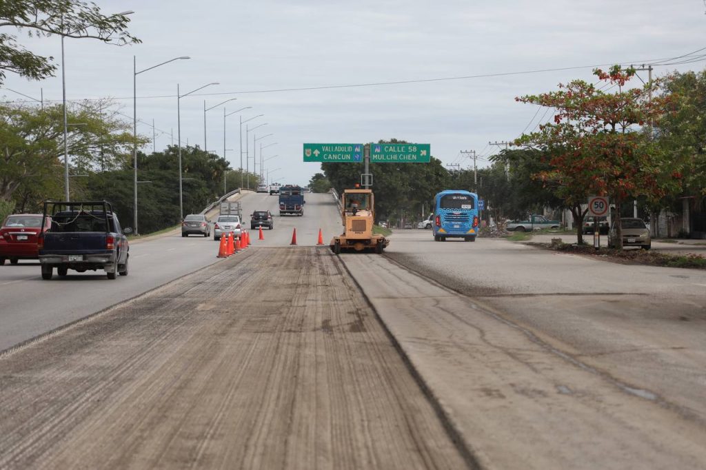 También ya se atendió el tramo que parte del kilómetro 9+800 antes de la rampa de bajada del paso superior vehicular X’matkuil hasta el kilómetro 11+250, frente a las bodegas de Slakami.