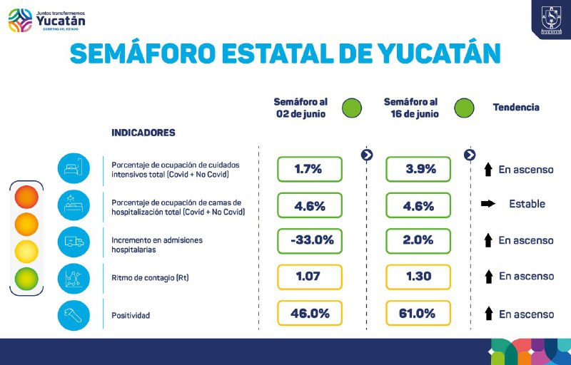 ESTOS SON LOS INDICADORES DEL SEMÁFORO ESTATAL DE YUCATÁN ESTE JUEVES 16 DE JUNIO.