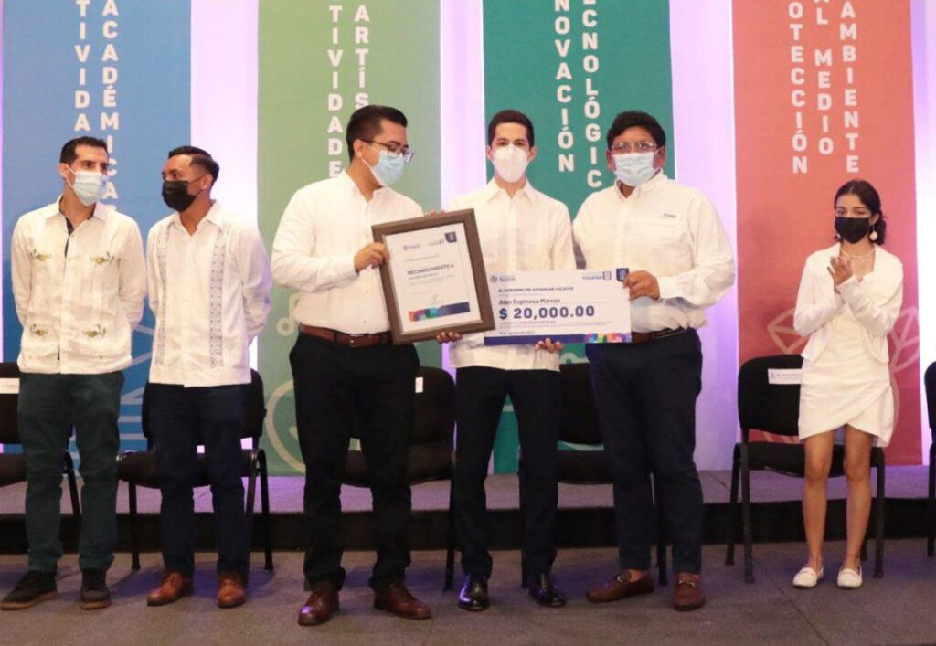 A Cocom Basto, de Vinos Kichák, por su emprendimiento que surgió en 2020, a inicios de la contingencia sanitaria, como alternativa a la falta de empleos y con el afán de derivar productos innovadores de un proceso fermentativo, y a Pech Borges, por su contribución en la Asociación Mexicana de Estudiantes de Enfermería (Ameenf), que busca promover el crecimiento profesional desde el pregrado, el liderazgo, la educación continua, la investigación y el reconocimiento de la profesión.