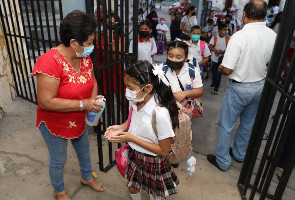 Mérida, Yucatán, 29 de agosto de 2022.- Estudiantes de más de tres mil escuelas tanto públicas como privadas de los niveles de Educación Básica y Media Superior del estado retornaron a las aulas para iniciar en Yucatán el ciclo escolar 2022-2023, en el cual se mantienen los protocolos de seguridad e higiene para cuidar la salud de alumnos y comunidad educativa.