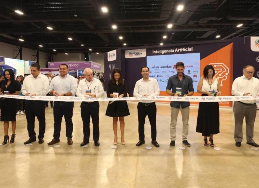 Previo a un recorrido por los stands del Congreso, el Gobernador puso en marcha el encuentro que acercará a la juventud yucateca a las megatendencias globales de emprendimiento, inteligencia artificial, blockchain, ciberseguridad, gaming y realidad extendida.