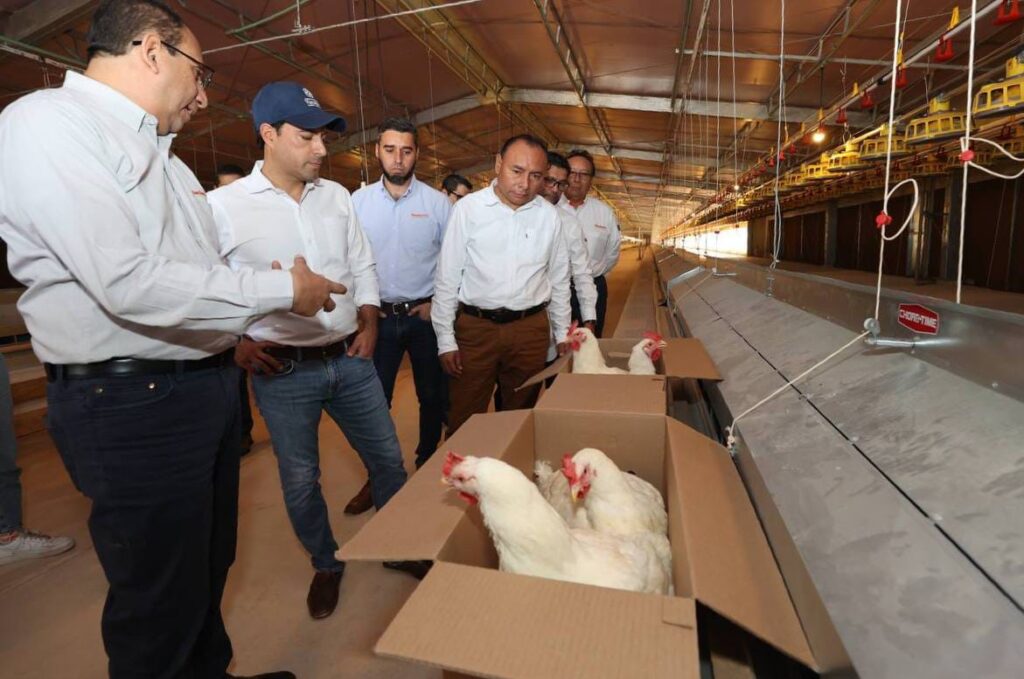 Se explicó que este proyecto contempla un total de 84 naves con una capacidad de alojamiento de 1,112 aves, las cuales se distribuyen en 28 naves para crianza, donde se cuenta con una capacidad de 384 mil aves en desarrollo. También, se tienen 56 naves para postura, donde se cuenta con una capacidad de 728 mil aves en producción de huevo incubable.