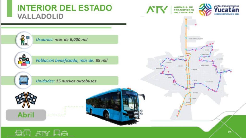 En el caso de Tizimín serán 10 autobuses que benefician a una población de 80 mil personas del municipio y sus comisarias; mientras a Valladolid llegarán 15 unidades para beneficio de 85 mil habitantes.