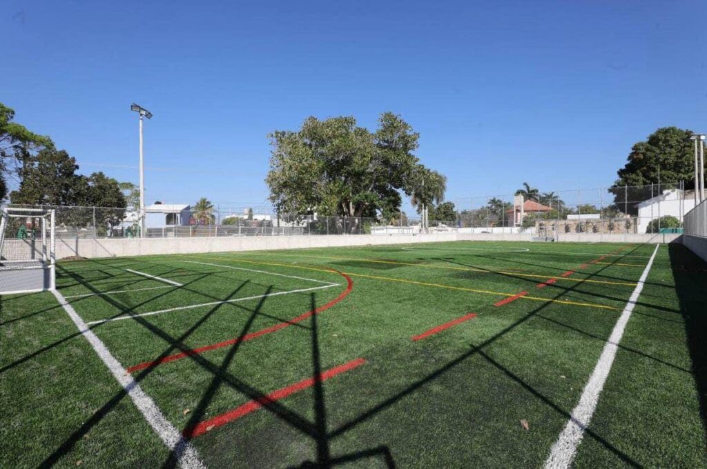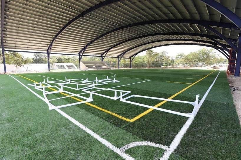 La obra consta en la construcción de una cancha de básquetbol, otra de fut 5, fut 7, fútbol de salón, tochito, así como jaulas de bateo, y un centro de usos múltiples con tableros, techo y gradas. Rehabilitación que forma parte de un esfuerzo conjunto que anunció el Gobernador Mauricio Vila Dosal para transformar al sur de la ciudad con la modernización de 23 parques del sur de la capital yucateca.