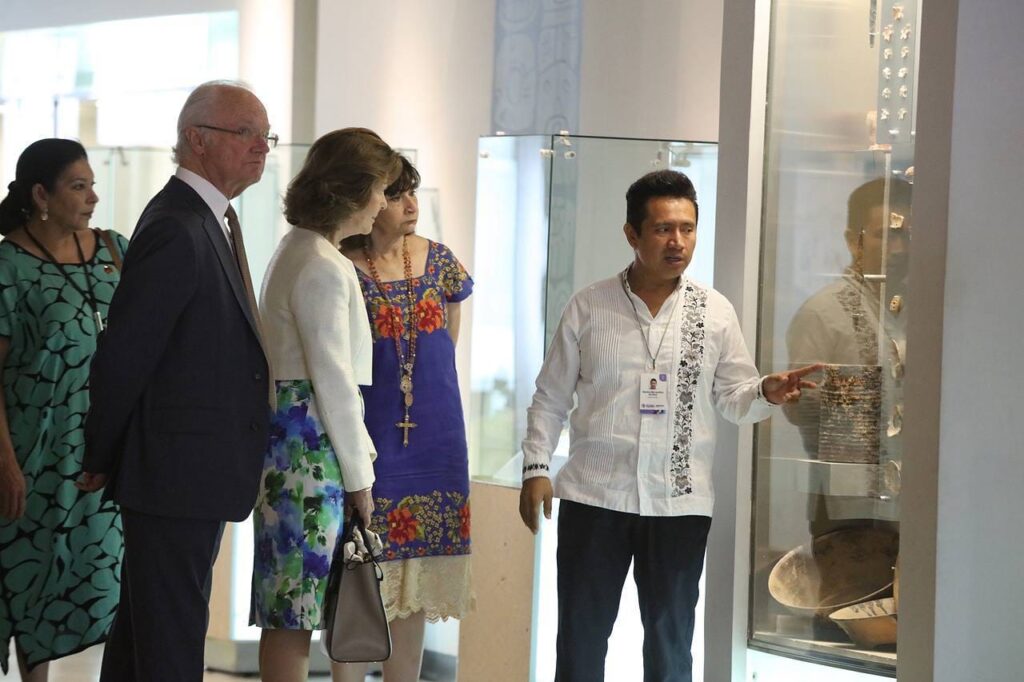 Acompañados de su comitiva y funcionarios del Gobierno del Estado, los monarcas suecos arribaron a las 11:30 horas al Gran Museo del Mundo Maya de Mérida para comenzar un recorrido guiado que incluyó las salas “El Mayab, Naturaleza y Cultura”; “Mayas de hoy”, “Mayas de ayer”, y “Mayas Ancestrales”. Los distinguidos visitantes quedaron maravillados, al adentrarse en el pasado de este pueblo milenario, sin dejar de conocer el panorama actual de esta cultura.
