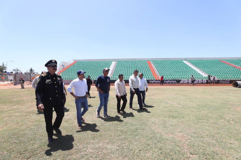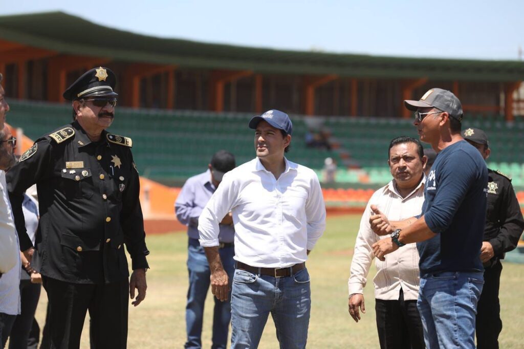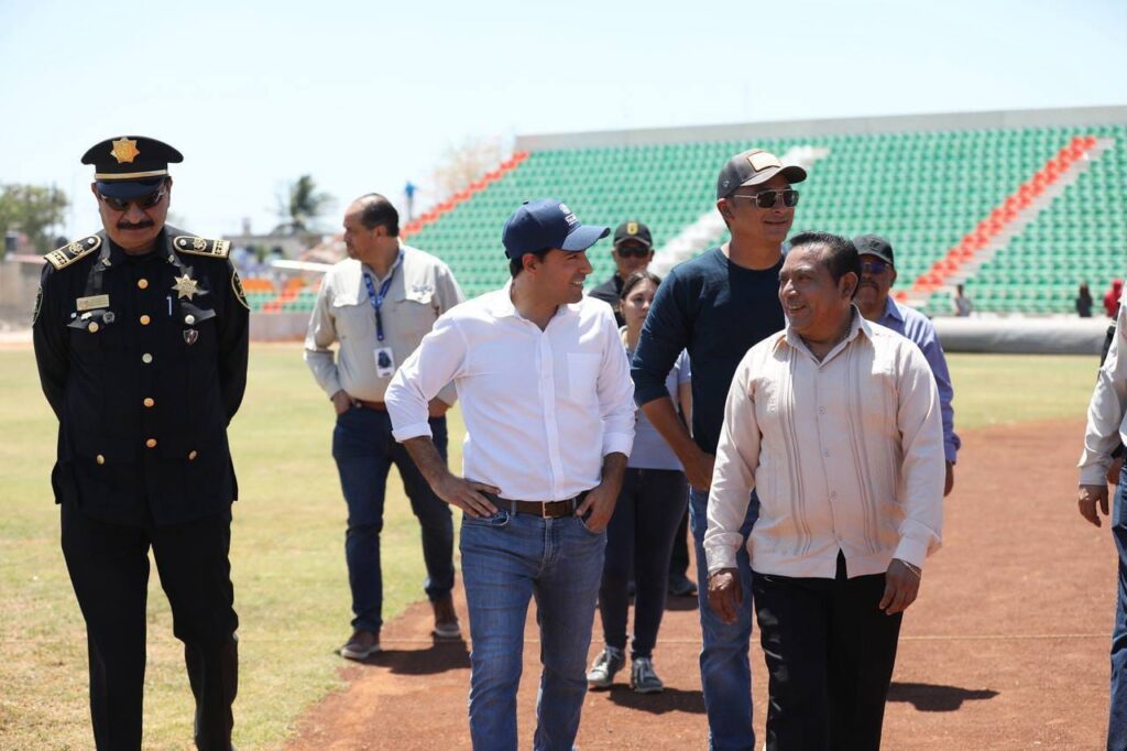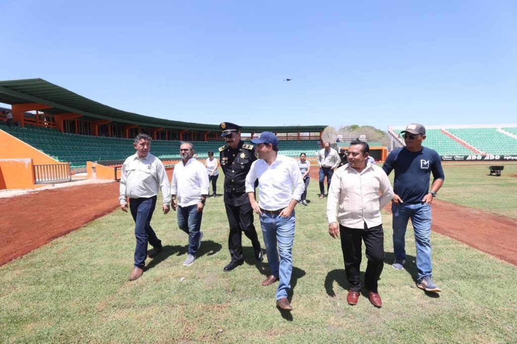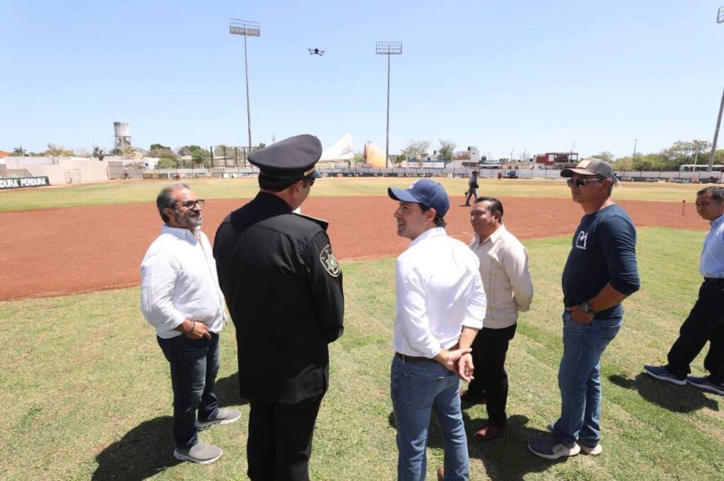 Vila Dosal, junto con los titulares de la Secretaría de Seguridad Pública (SSP), Luis Felipe Saidén Ojeda y Alejandro Orozco García, director General del Club de Leones Yucatán, el Gobernador constató las obras de este parque que ya está casi listo y el cual fue totalmente renovado desde el campo, hasta los baños, gradas, vestidores, pantallas, luminarias, y demás requerimientos que exige la LMB para albergar juegos de béisbol profesional.