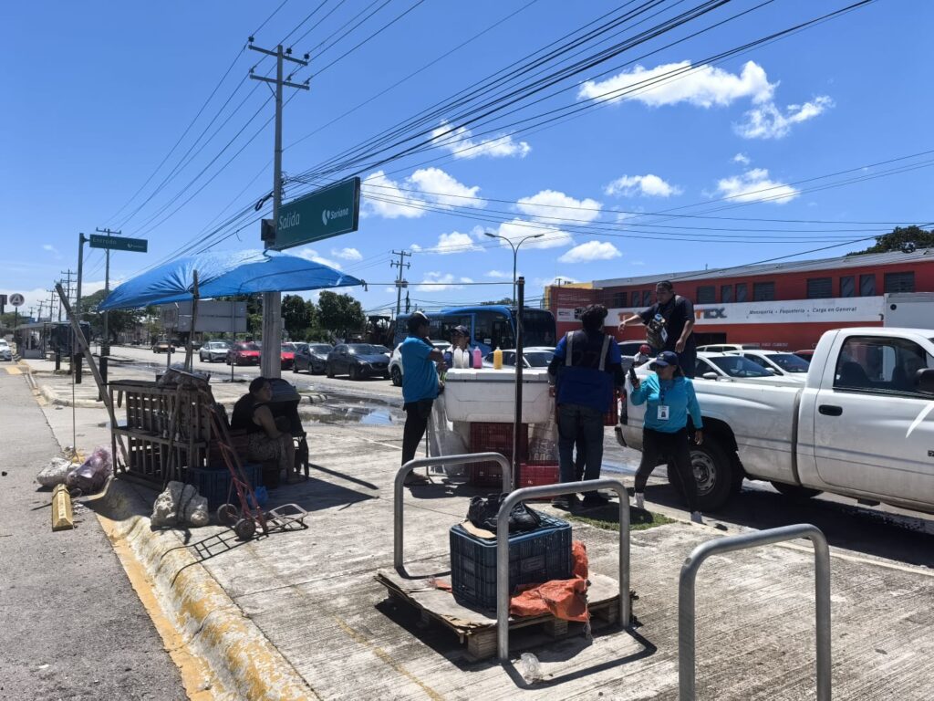 Un segundo operativo se llevó a cabo en la avenida Canek, esquina con avenida Mérida 2000, donde se decomisó un puesto de jugos y aguas instalado de manera irregular.